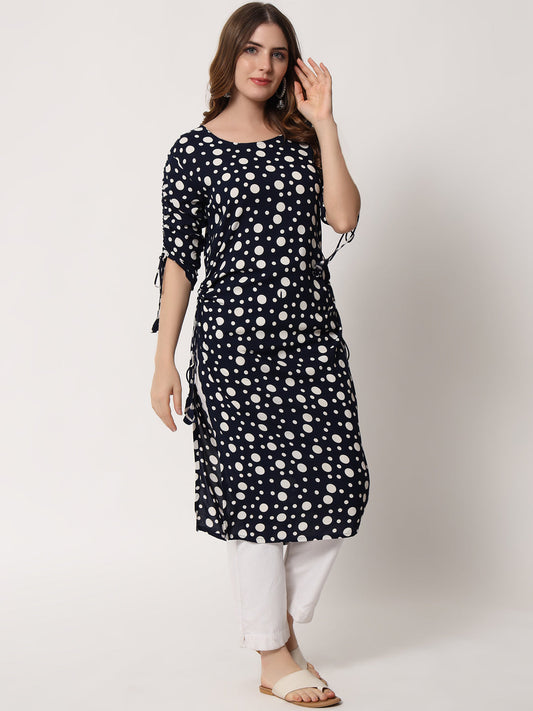 Anam jaipuri Polka Dots Straight Kurti in Black
