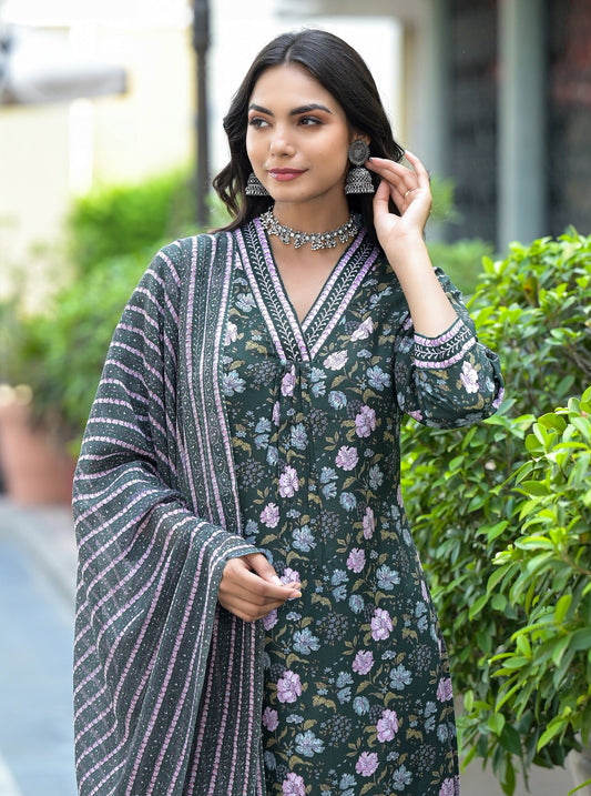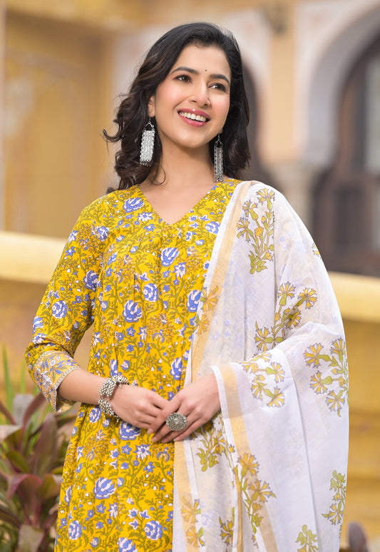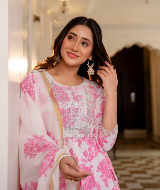 Anam Ethnic Set Women Floral Printed Flared A-Line Kurta and Pant set with Dupatta
