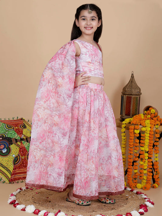 Girls Wedding Wear Designer Top and Skirt Set in Pink