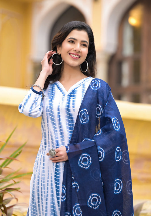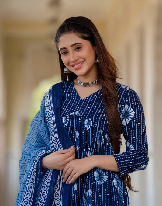 Anam Ethnic Set Women Indigo Printed Kurta and Pant Set With Dupatta
