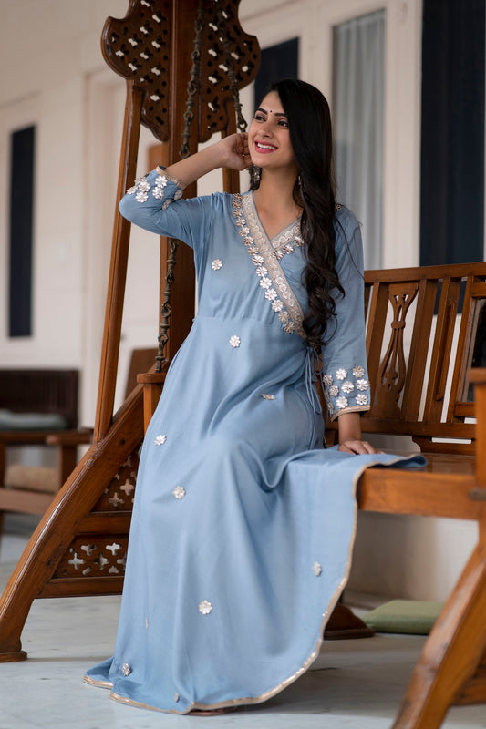 Anam jaipuri Grey Gotta Patti Designer Embroidered Festive & Wedding Wear Long Kurta