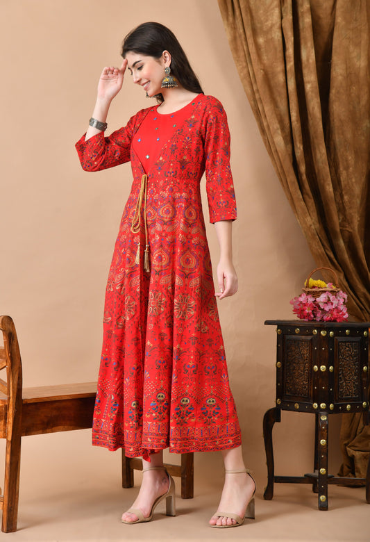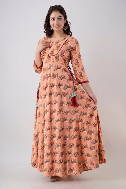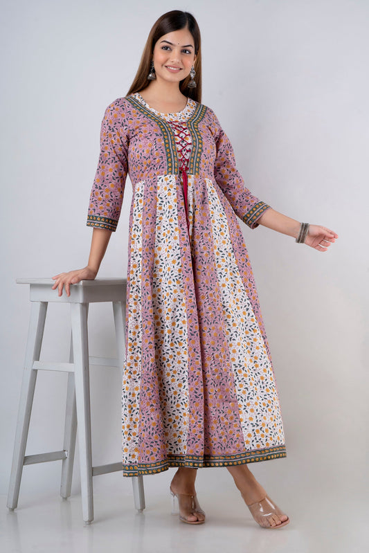 Anam jaipuri Anarkali Printed Flared Tie Up Party Wear Long Kurta