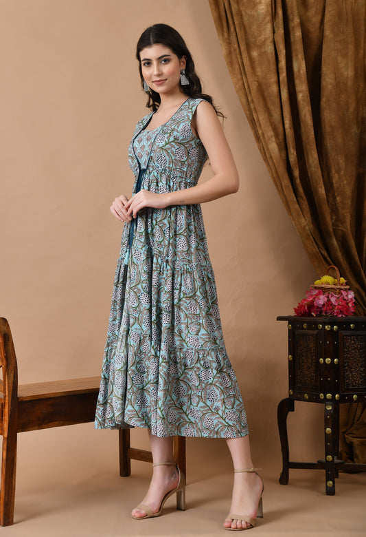 Anam jaipuri Printed Anarkali Dress In Light Blue