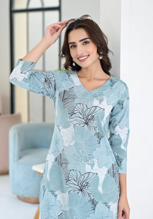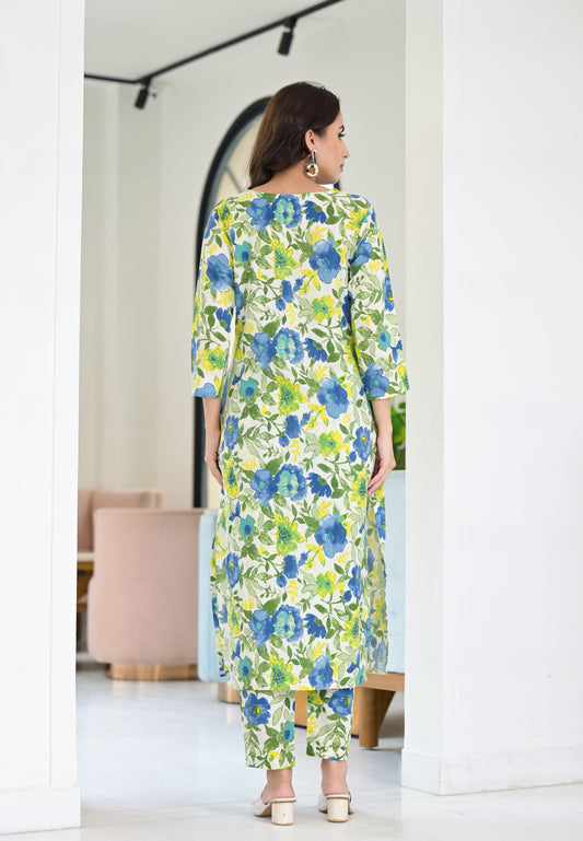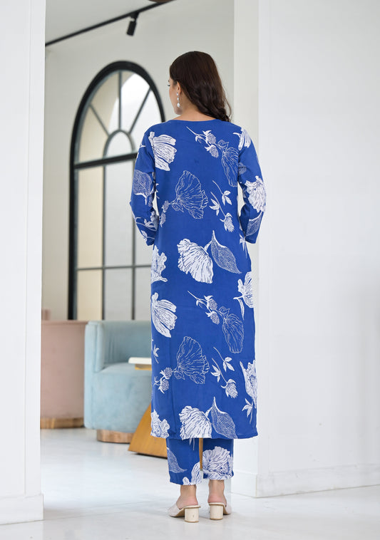 Anam Ethnic Set Floral Printed Blue Co-ord Set