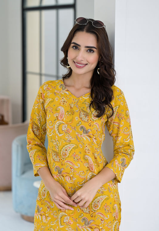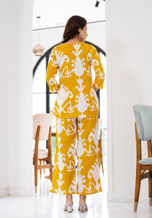 Anam Ethnic Set Floral Printed Yellow Co-ord Set