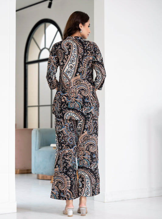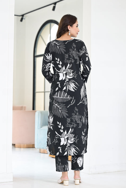 Anam Ethnic Set Floral Printed Black Co-ord Set