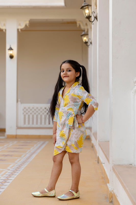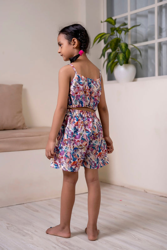 Cutie Diva Girls Comfy Printed Sleeveless Crop Top and Shorts With Shrug