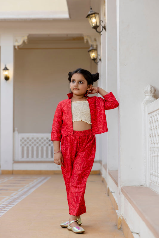 Cutie Diva Girls Printed Sleeveless Crop Top and Shorts With Shrug