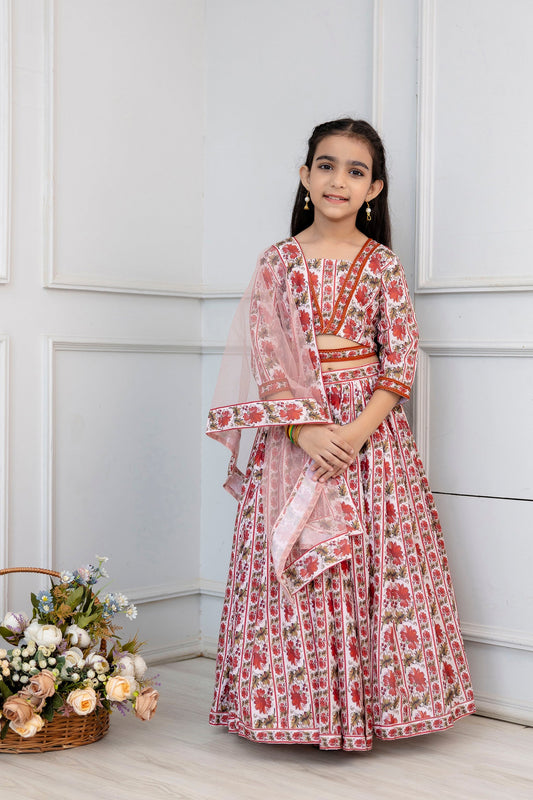 Girls Wedding Lehenga Choli & Dupatta Set in Cotton