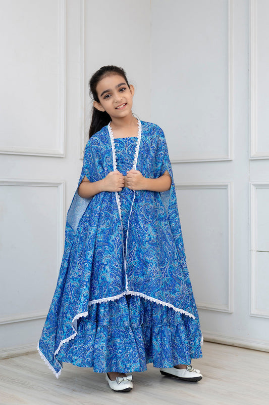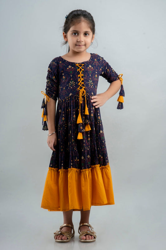 Anam jaipuri Girls Anarkali Kurta in Blue & Yellow