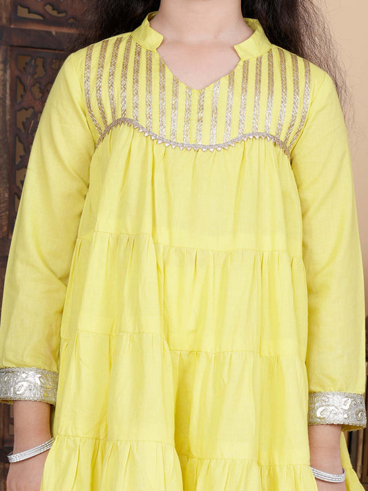 Kids Girls Festive Kurta and Churidar Set in Yellow