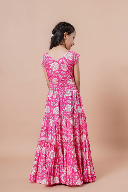 Girls Wedding Wear Designer Top and Skirt Set in Pink