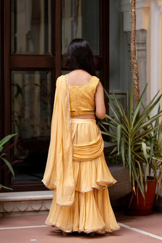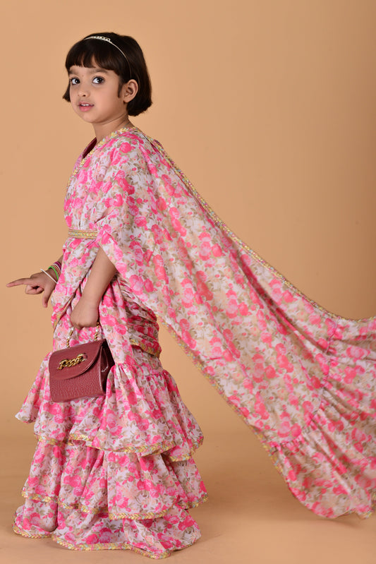 Girls Pre Draped Ready To Wear chiffon Saree with sequence blouse
