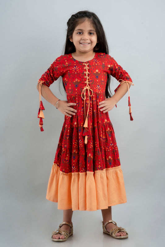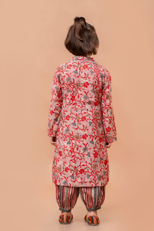 Anam jaipuri Girls Anarkali Kurta in Red & Pink