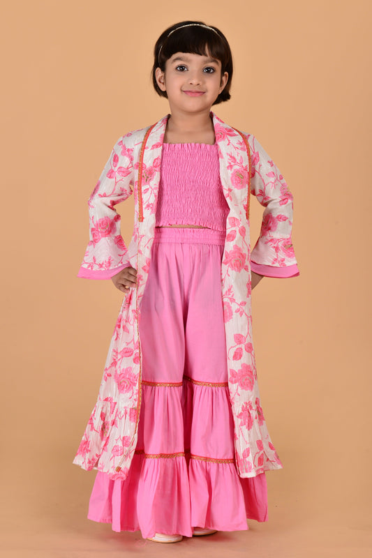 Partywear Girls Sleeveless pink Anarkali kurta with sharara Set