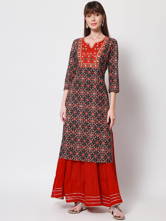 Anam jaipuri Embroidered Straight Kurti in Black & Red