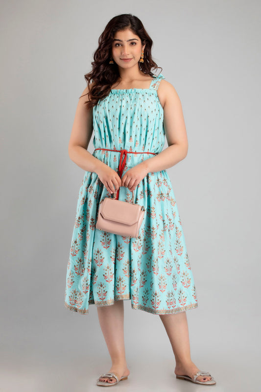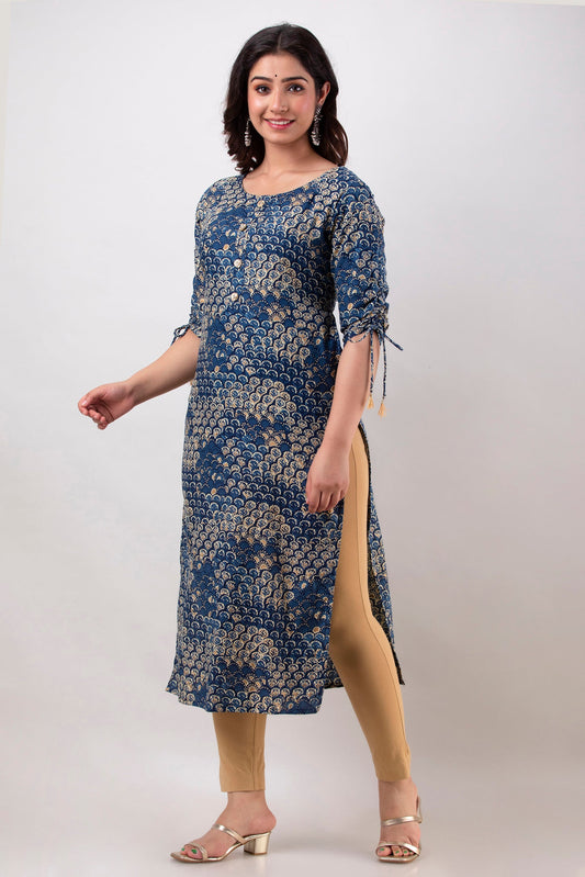 Anam jaipuri Women Light Blue Printed Cotton Straight Kurta