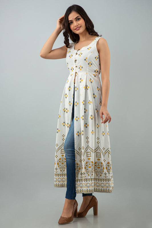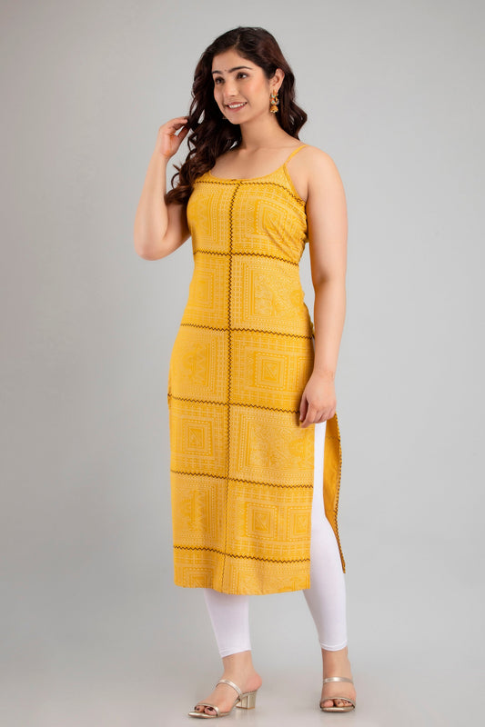 Anam jaipuri Sleeveless Printed Straight Kurta in Yellow