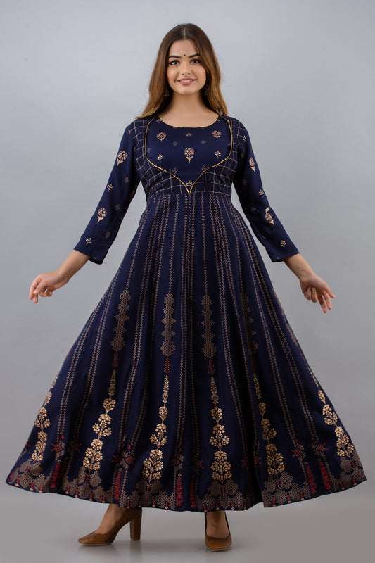 Anam jaipuri Blue Anarkali Flared Festive Long Kurta