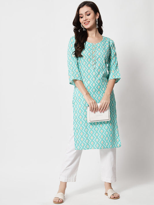 Anam jaipuri Zig-Zag Print Straight Kurti in Light Green