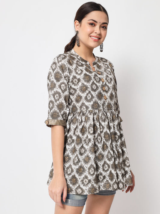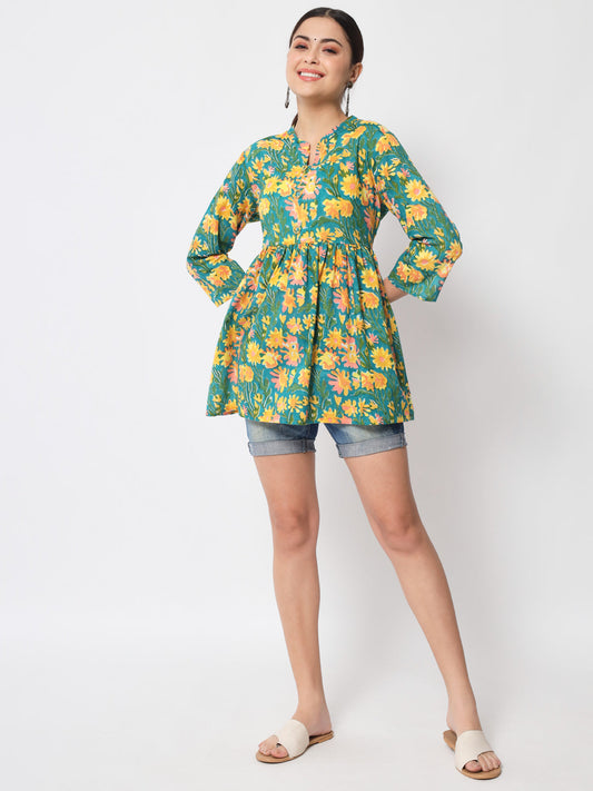 Anam jaipuri Green Floral Printed Tunic in Cotton