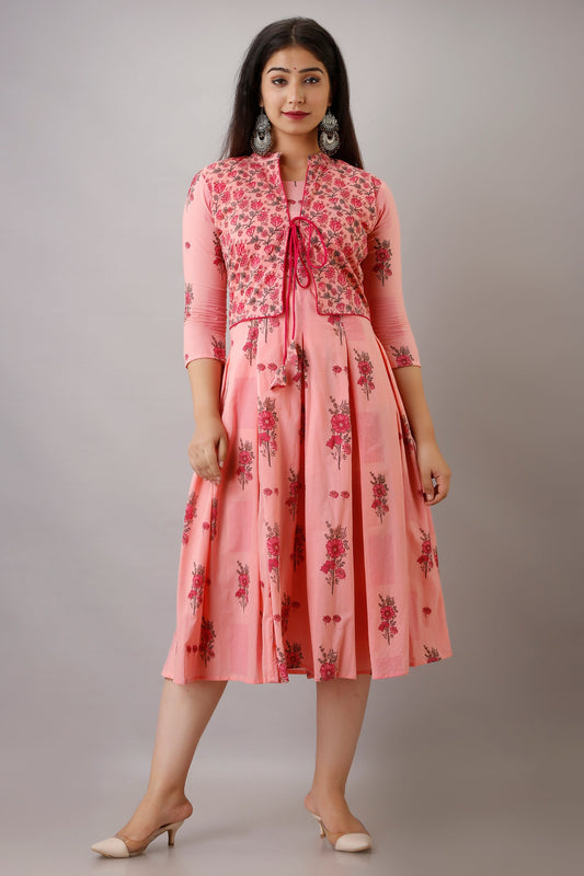 Anam jaipuri Gold Printed Designer Jacket Kurta In Pink