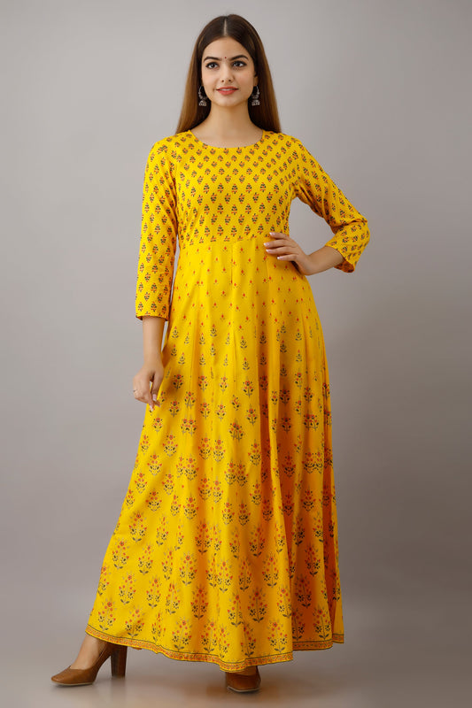 Anam jaipuri Gold Printed Anarkali Flared Kurta In Lemon Yellow