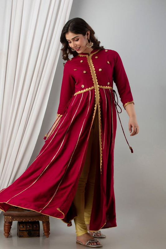Anam jaipuri Maroon Gotta Patti Open Front Festive Party Wear Long Flared Kurta