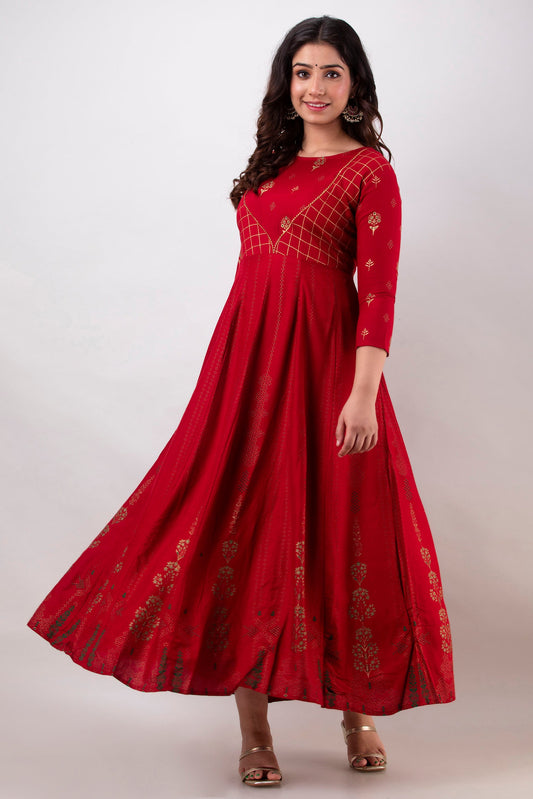 Anam jaipuri Red Anarkali Gotta Patti Festive Flared Long Kurta