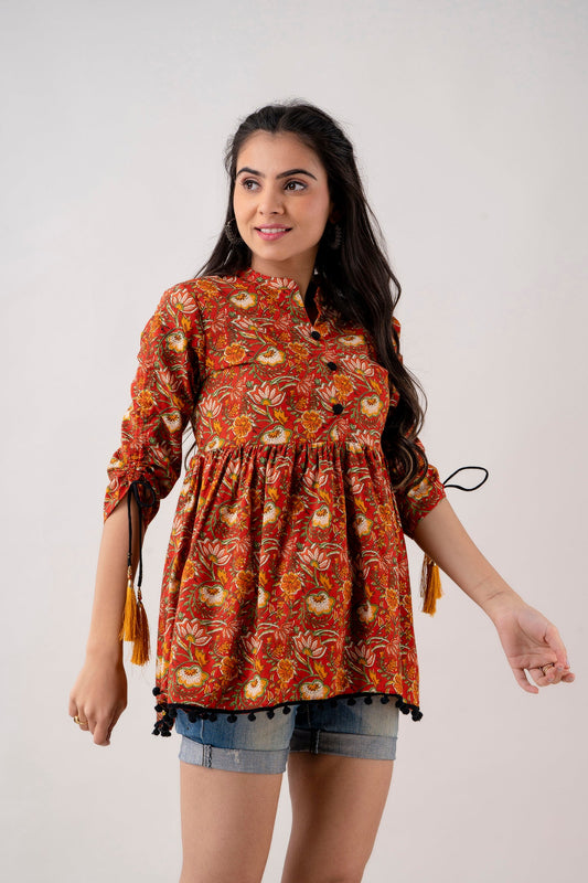 Anam jaipuri Red Floral Printed Tunic in Cotton