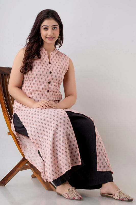 Anam jaipuri Paisley Print Front-slit Kurti in Pink