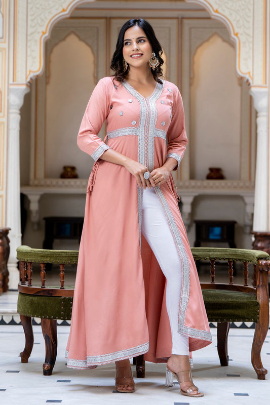 Anam jaipuri Peach Gotta Patti Open Front Festive Party Wear Long Flared Kurta