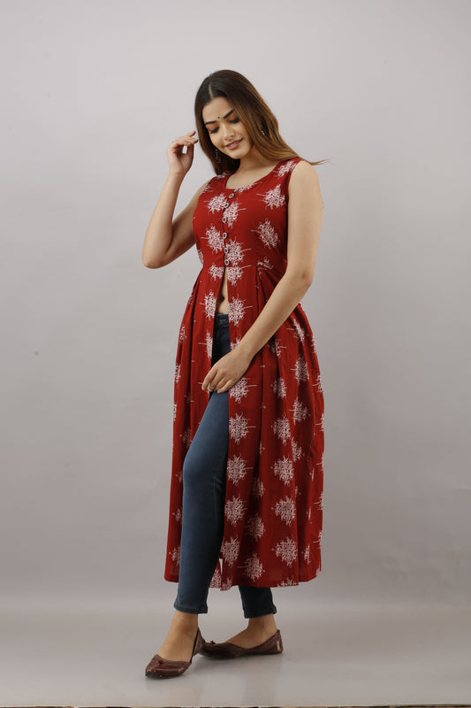 Anam jaipuri Printed Front-slit Kurta in Maroon