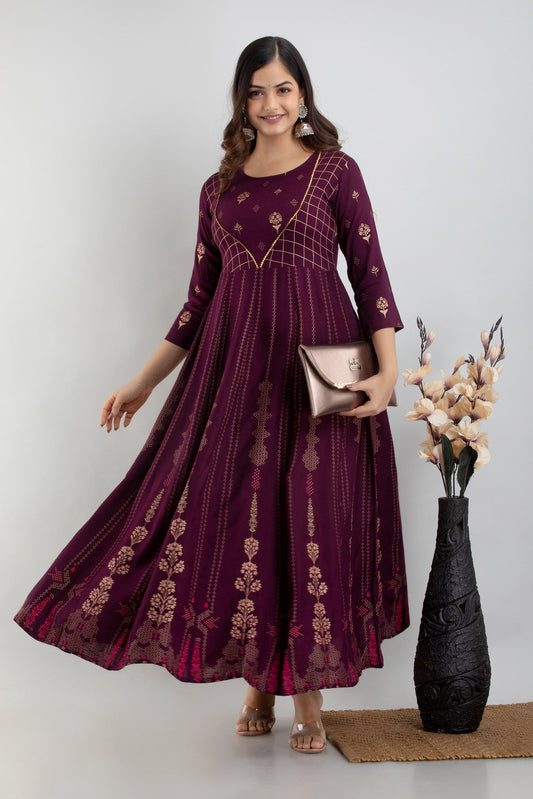 Anam jaipuri Anarkali Party Festive Wear Flared Long Kurta In Wine