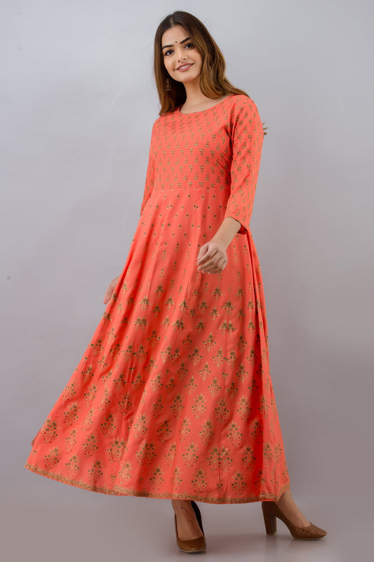Anam jaipuri Gold Printed Festive Anarkali Flared Kurta