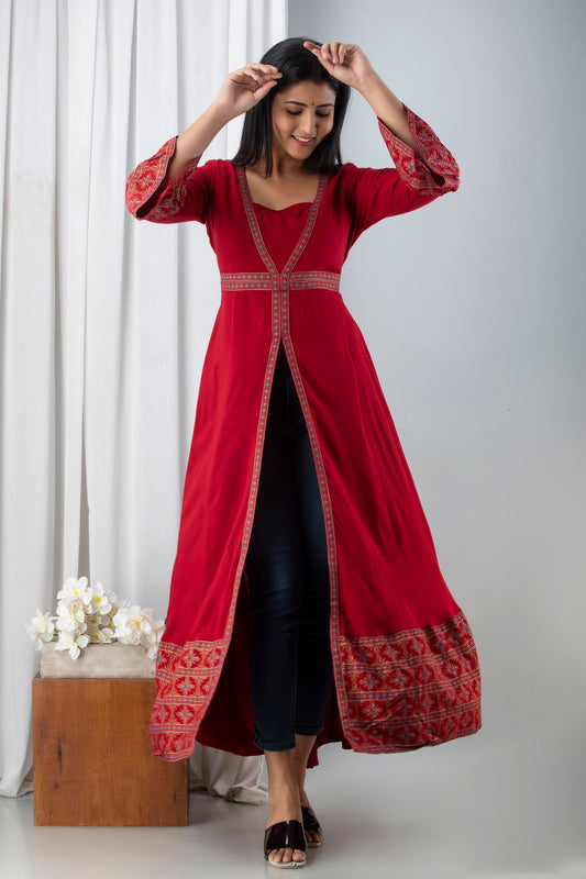 Anam jaipuri Red Open Front Designer Festive Wear Long Kurta