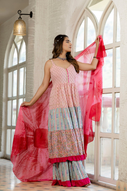 Anam jaipuri Gota Patti Anarkali kurta in Pink