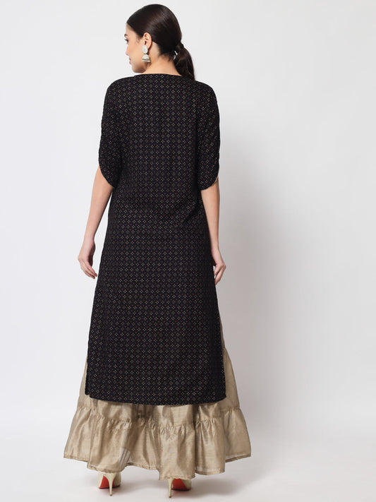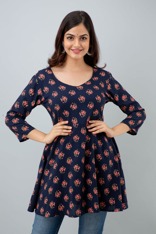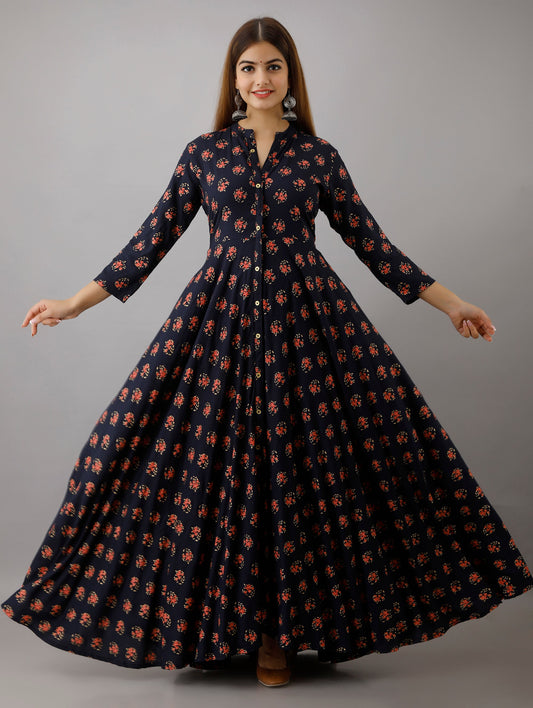 Anam jaipuri Long Flared Printed Kurta in Dark Blue