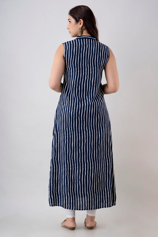 Anam jaipuri Stripe Print Front slit Kurti in Blue