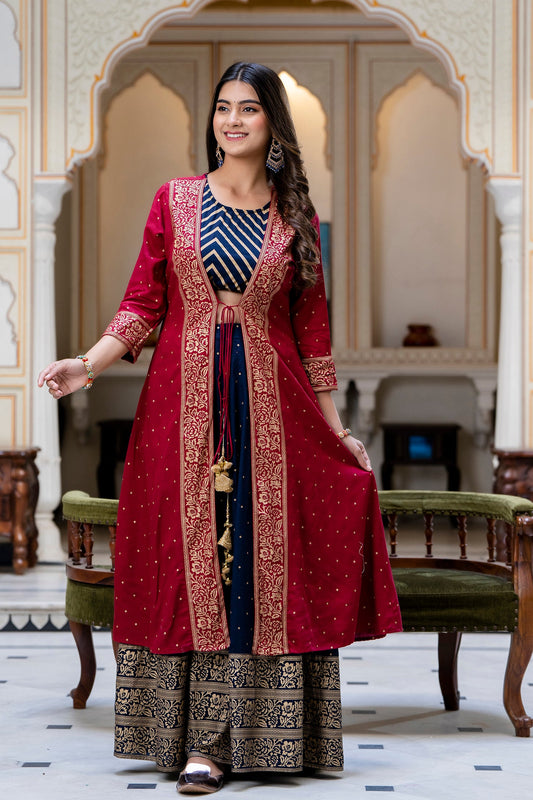 Anam jaipuri Maroon Gotta Patti Embroidered Festive & Wedding Wear Flared Long Kurta