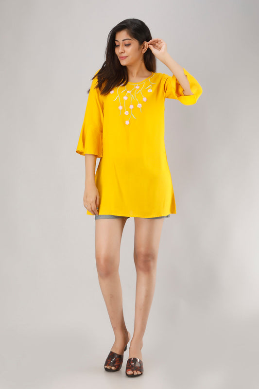 Anam jaipuri Rayon Embroidered Tunic in Yellow